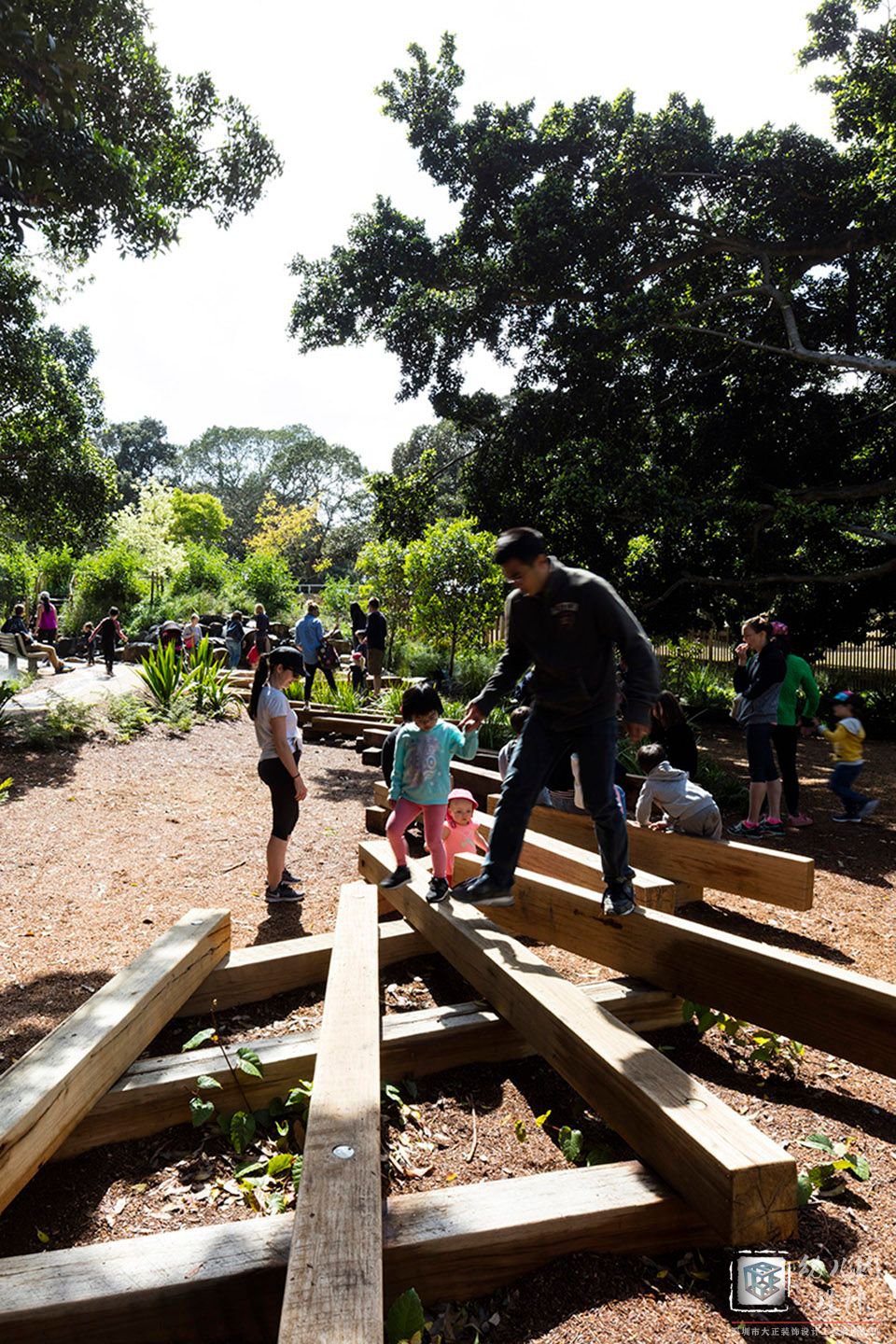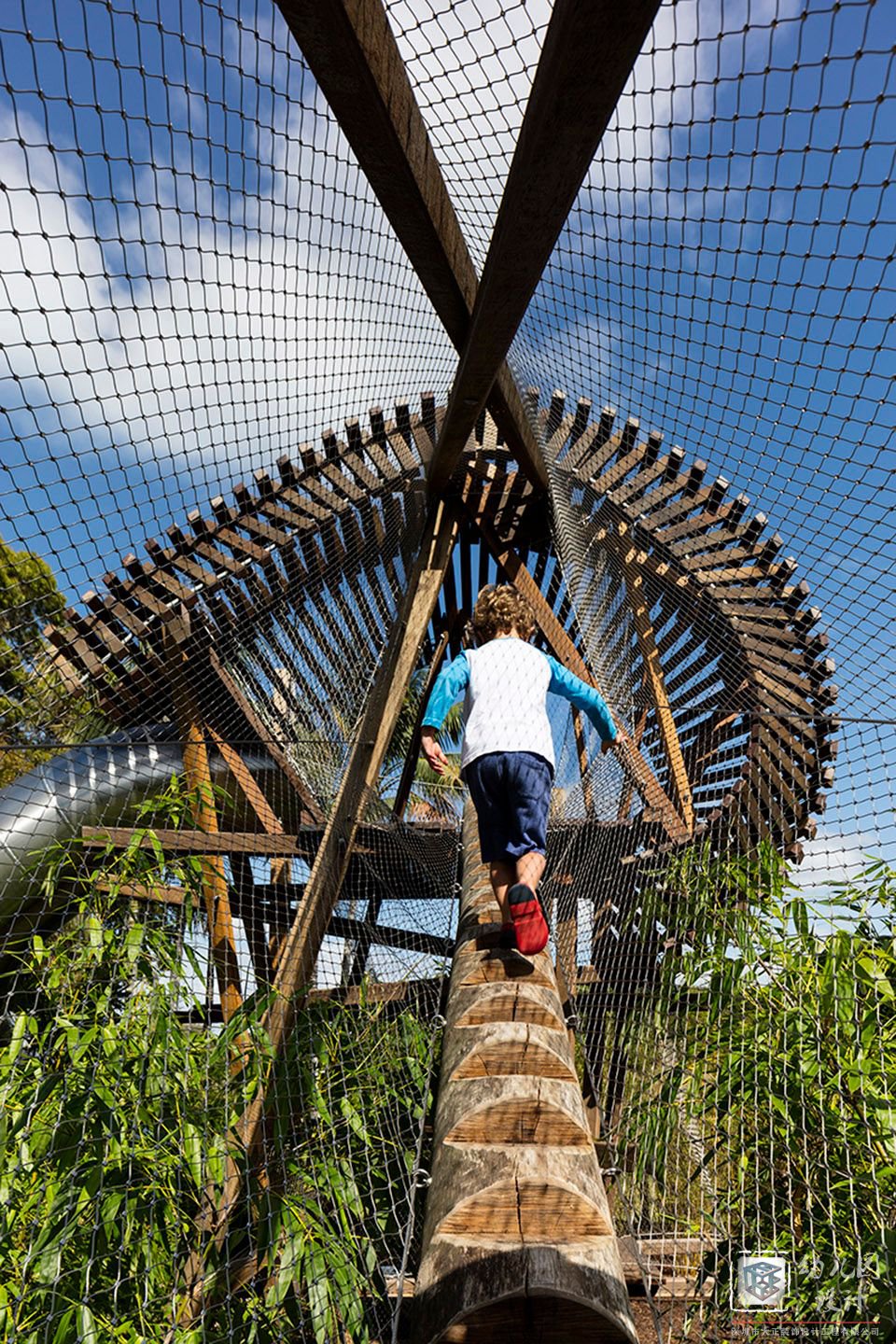 澳派景觀總監(jiān)兼悉尼科技大學(xué)副教授Sacha Coles說(shuō):“孩子喜歡發(fā)現(xiàn)、挑戰(zhàn)、運(yùn)動(dòng)和冒險(xiǎn)。他們?cè)谧匀恢芯蜁?huì)很開(kāi)心,可以玩水、爬樹(shù)、在水池里跳躍、在樹(shù)林里捉迷藏。這是我們作為父母的本能告訴我們的,而我們作為設(shè)計(jì)師則是把這些觀察融入工作中。” 所以在這個(gè)野趣游樂(lè)公園里,天然的材料以及原始性的景觀營(yíng)造出一個(gè)讓孩子們身處真實(shí)森林的空間,使孩子們更親近自然。