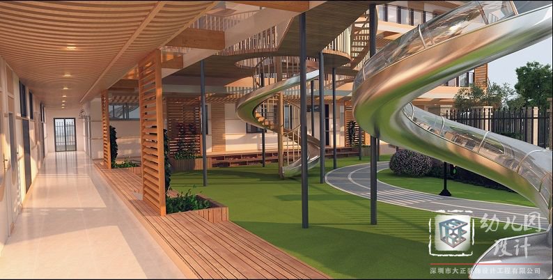 其次是功能構(gòu)件創(chuàng)新游樂化,例如有的幼兒園用游戲滑梯實(shí)現(xiàn)樓到活動場地的可能。最后是防止摔傷和擦傷的設(shè)計(jì),如走廊走道廁所的防滑設(shè)計(jì)等,鋒利邊角盡可能用圓滑的細(xì)部去替代等。