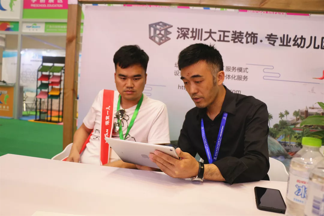 作為專業(yè)幼兒環(huán)境設計的品牌公司,在展會期間,大正設計吸引了一波又一波的幼教人士前來參觀,現(xiàn)場熱鬧非凡。觀客向業(yè)務員認真咨詢,對大正裝飾的優(yōu)秀設計案例發(fā)出連連贊嘆,在充分了解大正設計的設計施工流程后,進行深入業(yè)務洽談。