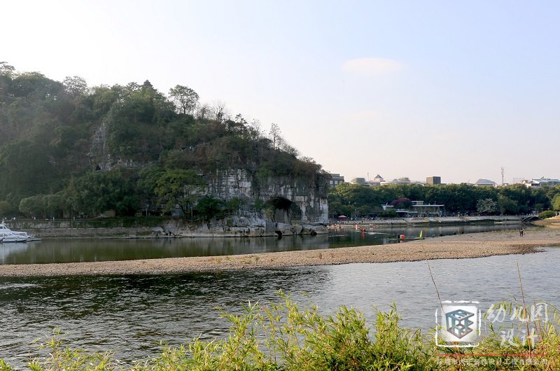 象山是桂林城市的城徽和標(biāo)志,它因為形狀像一只在江邊伸鼻暢飲漓江水的巨象而得名,其次,在鼻腿之間造就一輪鄰水明月,構(gòu)成“象山水月”奇景。