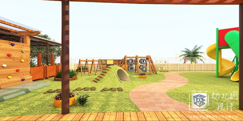 戶外景觀區(qū)是兒童認識生態(tài)植物的主要區(qū)域,也是彌補室內(nèi)空間自然化不足的重要區(qū)域。因此,自然生態(tài)設(shè)計是必要的,綠色植物的占比面積應(yīng)該明細,要設(shè)置高低區(qū)域讓孩子在草地上玩耍,它不僅滿足了孩子們攀爬、跳躍的行為習(xí)慣和心理,還為幼兒園的室外增添了一道風景。