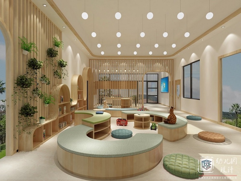 主配色主要運用在柜體等大件家具以及面積較大的裝飾上,可以是一個顏色,或者一個淡色系,還可以是由若干顏色組成的色組。主配色具有調(diào)節(jié)顏色平衡的作用,像幼兒園大多選擇淺顏色如白色及原木色作為基礎(chǔ)色,一般安全一點的搭配,基礎(chǔ)色是淺色,主配色也可以是淺顏色進行搭配。但考慮到幼兒園用色的趣味性,基于基礎(chǔ)色是淺顏色,稍鮮艷的主配色可以讓空間更出彩。