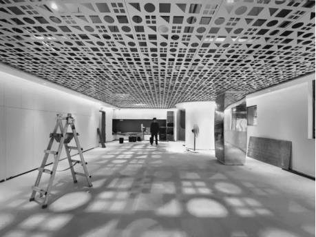 深圳科發(fā)幼兒園的中庭頂部采用了鏤空幾何鋁板作為天窗,隨著時(shí)間的流逝,光影在中庭流動(dòng),不同時(shí)刻,呈現(xiàn)出不同的效果,賦予了空間無(wú)限生命力。