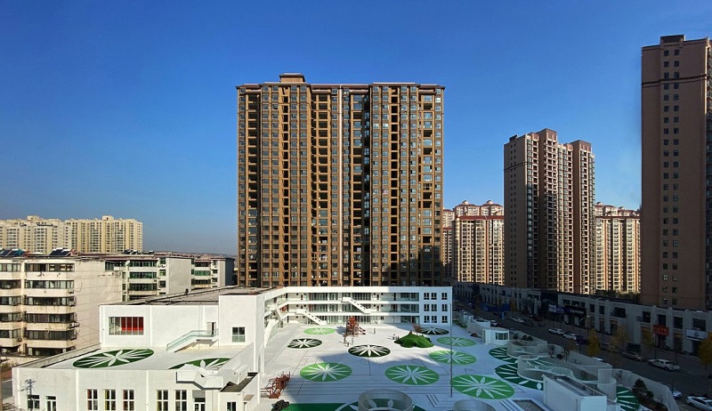 幼兒活動空間的好壞對于幼兒園的成長至關重要,靈寶兒童成長中心位于河南省三門峽市的一個縣級市——靈寶市北部一處社區(qū),是一個社區(qū)內建筑改造項目,改造前,建筑質量不高,空間局促、主體南側是未完工且長期沒有下文的辦公用房,此外,團隊還面臨著工期緊張,資金相對有限的問題。